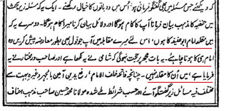 “The Rejection of Taqleed-e-Shakhsi started in the era of Queen Victoria. Before this there was no Rejection (of taqleed e shakhsi) infact Every one used to do taqleed-e-Shakhsi”