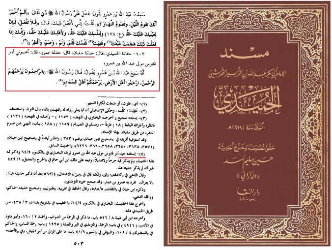 {Masnad Humaidi, 1/503, Hadith no.602}