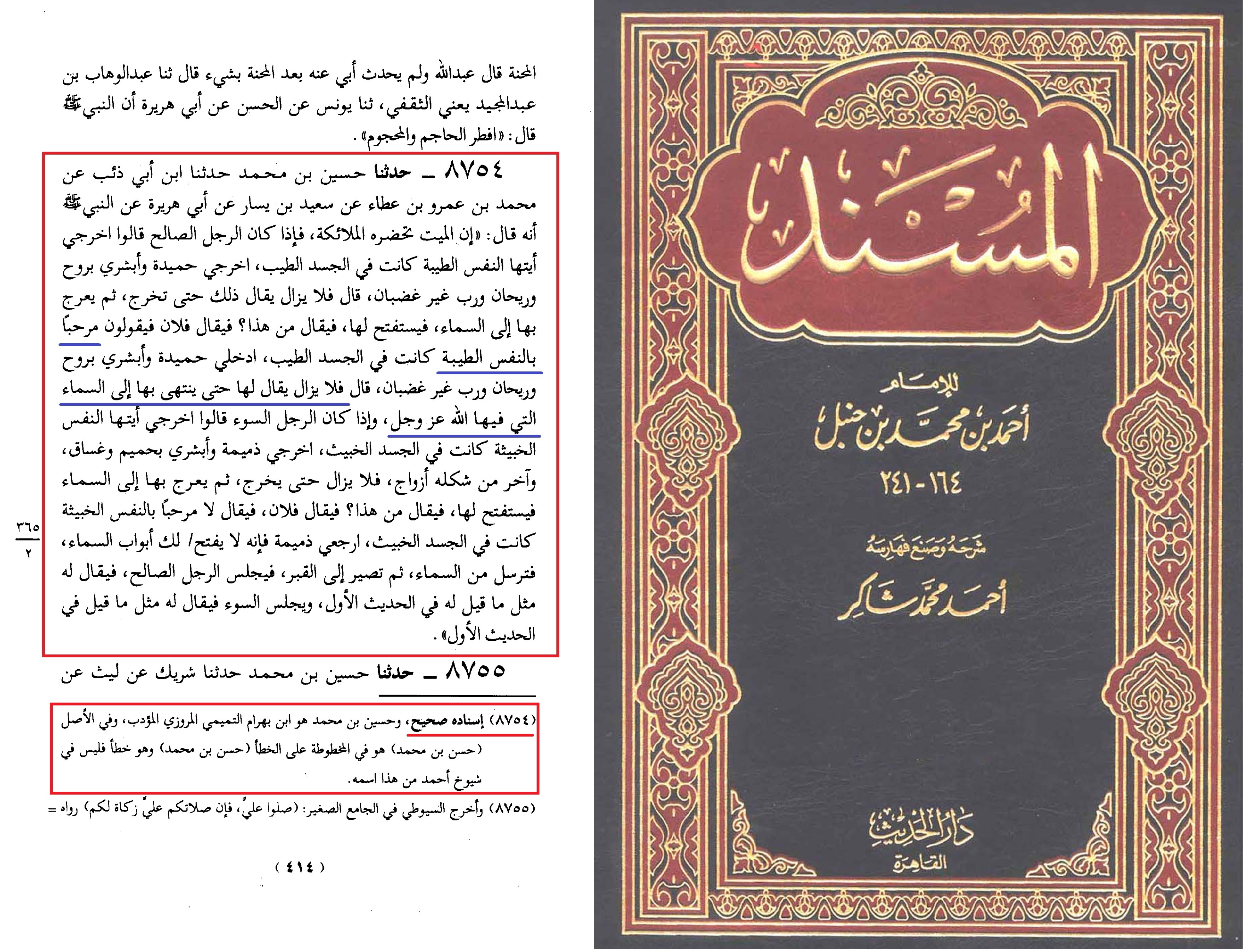 {Masnad Ahmad, 8/414, Hadith no.8754, Sanad Sahih}