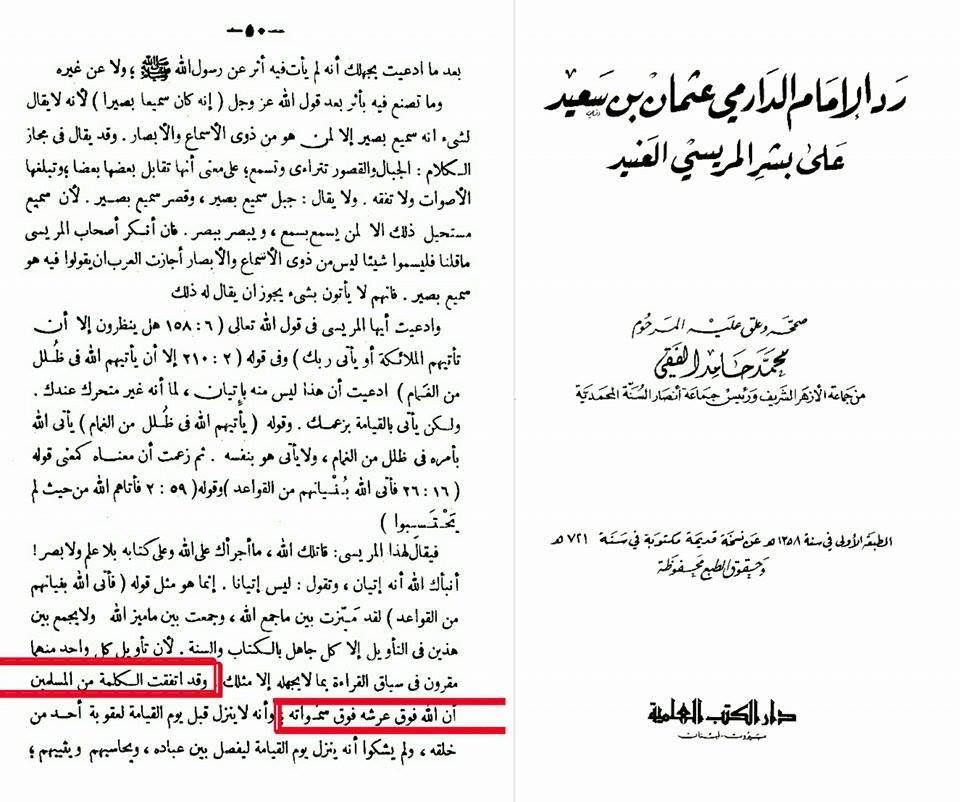قد اجْتمع الْيَهُود وَالنَّصَارَى وَأهل الْأَدْيَان مَعَ الْمُسلمين على أَن الله عزوجل على الْعَرْش